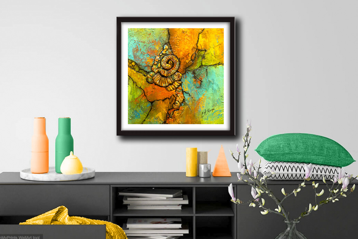 CHRYONESQUE GEOLIOGICAL ROCKS, FOSSILS, STONES PAINTING ON CANVAS