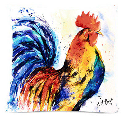 “I saw this watercolour (Ricky Rooster) in an exhibition and right away I was taken with it…the colours and composition had a vibrancy that grabbed my attention. After being drawn back to it several times I knew I had to have it. It was the standout of the exhibition for me.”