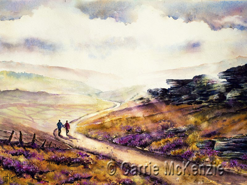 MOORS AND BRACKEN PAINTING – OVER THE MOORS AND FAR AWAY COPYRIGHT © Carrie McKenzie: Artist Halifax West Yorkshire. COLOUR MATCH: care has been taken to colour match the painting/print with what you see online, however colours on different viewing devices can vary due to individual screen settings. WATERMARK: The copyright watermark will not appear on the original painting or prints.