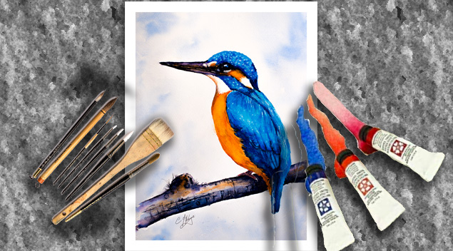 ONLINE VIDEO TUTORIAL : PAINT A KINGFISHER IN WATERCOLOUR
